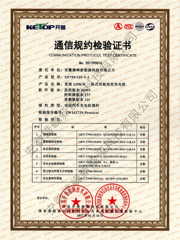 熱烈祝賀安徽雄峰新能源科技有限公司充電樁產(chǎn)品順利通過中電協(xié)繼電保護(hù)及自動(dòng)化設(shè)備分會(huì)技術(shù)標(biāo)準(zhǔn)中心、許昌開普檢測技術(shù)有限公司及國家職能微電網(wǎng)控制設(shè)備及系統(tǒng)質(zhì)量監(jiān)督檢驗(yàn)中心檢測,并獲得產(chǎn)品檢測證書及檢驗(yàn)報(bào)告!