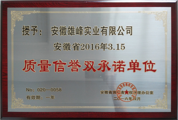 2016年質(zhì)量信譽(yù)雙承諾單位